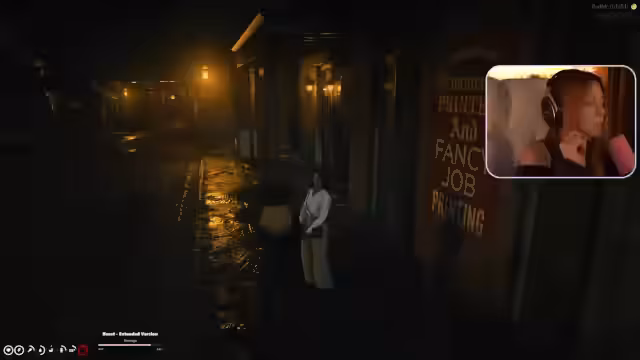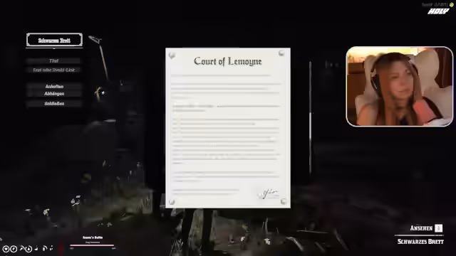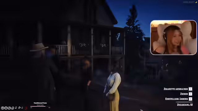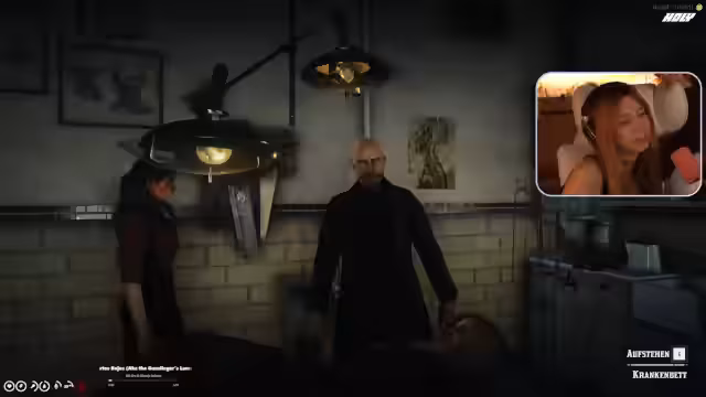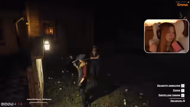 07:33:10Die Unterhaltung wechselt zu persönlichen Beziehungen und Machtkämpfen. Die Streamerin äußert ihre Philosophie, nichts zu besitzen, um sich angreifbar zu machen. Dies wird jedoch durch ihr Interesse am Sheriff konterkariert, bei dem sie denkt, verliebt zu sein. Die Dynamik mit Miss Fitzjames, die sie als Dämon bezeichnet, wird ebenfalls diskutiert. Die Spannung steigt, als die Streamerin erklärt, von jemandem angeschossen worden zu sein und die Person kennenlernen zu wollen, was als respektvolle, aber gefährliche Begegnung dargestellt wird.