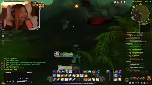 00:21:25Der Streamer stößt zu einer Gruppe für das Dungeon Maraudon, um Level 50 zu erreichen, und erwähnt, dass ein Update für Battle.net erforderlich ist. Gegen 18 Uhr ist ein World of Warcraft-Event geplant, zu dem jennyan nicht teilnehmen wird, da es sich um ein Quiz handelt. Die Gruppe konzentriert sich darauf, die Prinzessin im Dungeon zu finden und zu besiegen, während jennyan gleichzeitig questet und Inventar-Management betreibt, was zu vollständigen Quest-Logs führt und das Löschen von Aufgaben erfordert.