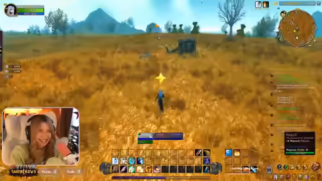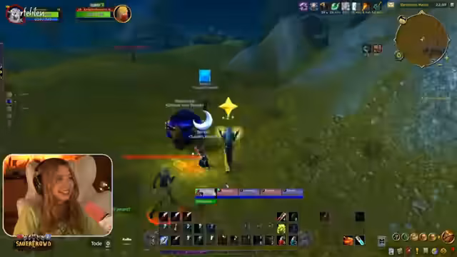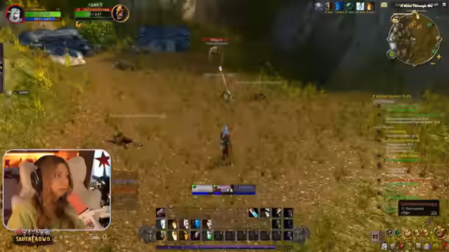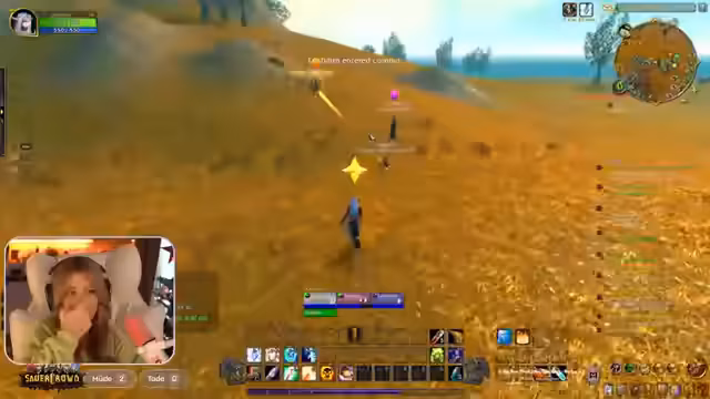 03:07:46Die Streamerin unterhält sich über wiederkehrende Memes wie die angebliche Wettervorhersage durch Brustgröße und vergleicht das mit der Figur Ronja. Der Fokus liegt dann auf dem gemeinsamen Spielen von World of Warcraft Classic, speziell in Westfall. Die Gruppe erledigt zahlreiche Quests, sammelt Leinenstoffe für eine Guildie und diskutiert über den Levelverlauf und die Gefahr bestimmter Gegner wie Murlocs an der Küste, die als sehr gefährlich gelten.