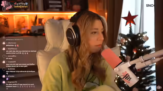 06:28:15Gegen Ende des Streams geht jennyan detailliert auf ihre technische Stream-Ausstattung ein. Sie gibt eine klare Empfehlung für einen Dual-PC-Setup, bei dem Gaming-PC und Stream-PC getrennt sind, um Leistung und Stabilität zu erhöhen. Sie erklärt die Vorteile ihrer Rodecaster Duo Soundkarte und beleuchtet auch ihre Beleuchtungssituation, die bewusst mit Schimmen im Gesicht arbeitet, und gibt Einblicke in ihren gesamten Workspace mit mehreren Monitoren.