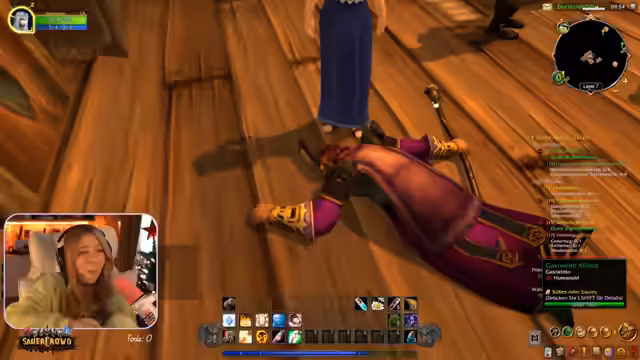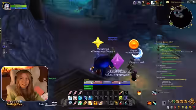 09:38:28Die Streamerin startet den Stream mit diversen Questen im Stemmerwald und sucht nach einer Gruppe für die Deadmines. Sie interagiert intensiv mit dem Chat, um eine passende Gruppe zu finden, und wird von einem Zergenpriester begleitet. Der Streamer stellt klar, dass sie nicht in der aktuellen Gruppe ist, um Druck zu vermeiden, und bietet an, eine eigene Gruppe zu bilden. Ein weiterer Spieler namens Klaus möchte ebenfalls teilnehmen, was die Suche nach einer passenden Konstellation für den Dungeon komplexer macht.