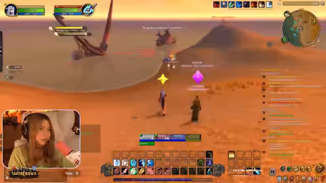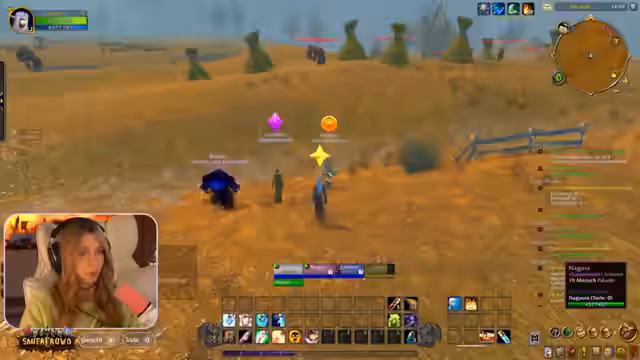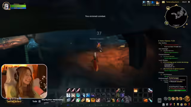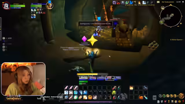 09:45:38Die Streamerin und ihre Gruppe betreten endlich die Deadmines. Die Anfangsphasen gestalten sich ruhig, mit Fokus auf das Koordinieren von Angriffen auf einzelne Ziele, um Überforderung zu vermeiden. Ein Fehler bei der Zielmarkierung führt dazu, dass sie versehentlich einen anderen Spieler unterstützen, was jedoch unproblematisch bleibt. Die Streamer ist äußerst fokussiert und gibt präzise Anweisungen, um den ersten Boss zu bezwingen und die Questen im Dungeon effizient abzuschließen.
