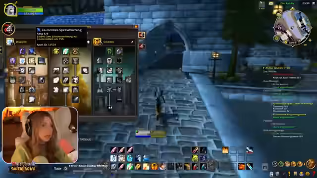 14:30:34Ein technischer Teil des Streams widmet sich der Charakterentwicklung und der Optimierung des Priesters. Jenyan gibt einer anderen Spielerin, Kimo, Ratschläge für ihren Talent-Build. Sie verweist auf einen Guide im Discord, der eine klare Vorgehensweise für die Talent-Skillung vorschlägt. Sie erklärt, dass für einen Priester in der Gruppe der Zauberstab der primäre Schadenquelle ist und der Fokus auf Disziplin und Heilung liegt. Sie geht auch auf die Wichtigkeit von Berufen wie Alchemie ein, da man später einen extrem wertvollen 'Überlebens-Trank' herstellen kann, der im Hardcore-Modus ein 'Game-Changer' ist.