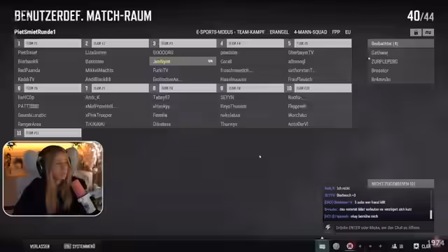 00:19:53Der Stream konzentriert sich auf ein bevorstehendes PUBG-Turnier der Peats, bei dem Jennyan mit ihrem Team um 18 Uhr startet. Sie beschreibt die Teams, an denen sie teilnehmen wird, und äußert sich über die Stärke potenzieller Gegner wie Bierbank mit Peter und weitere bekannte Spieler. Ihr Team besteht aus Jen, Asta, FurukTV und Gorg. Jennyan äußert sich auch über ihre Nervosität und die Wichtigkeit, sich auf die Teams vorzubereiten, indem sie Waffentests im Aim Lab durchführt und bestimmte Waffen wie die Mini oder Vector bevorzugt.