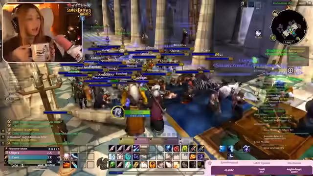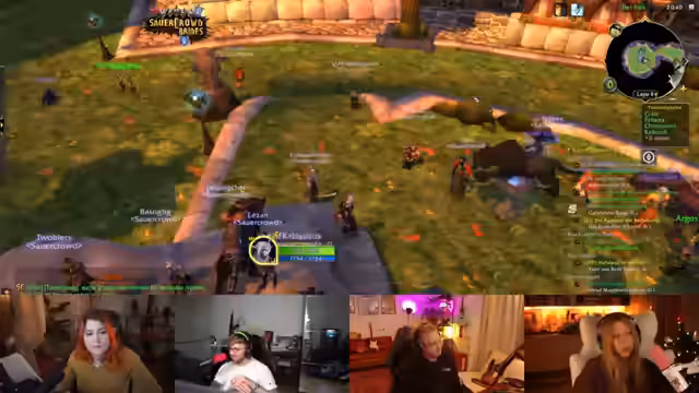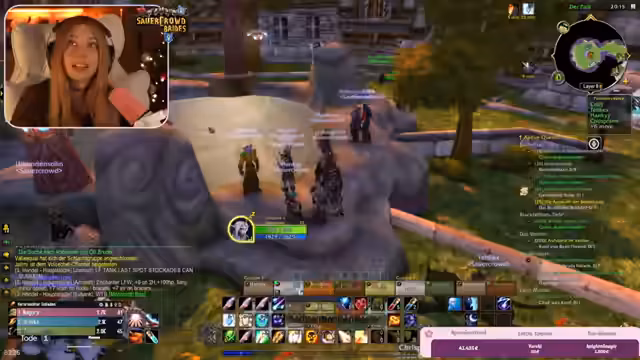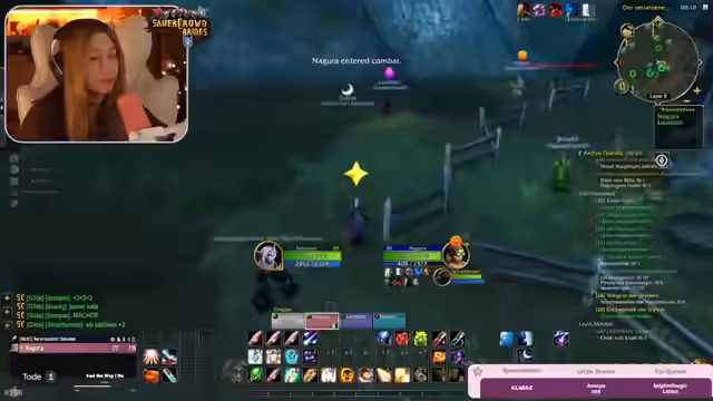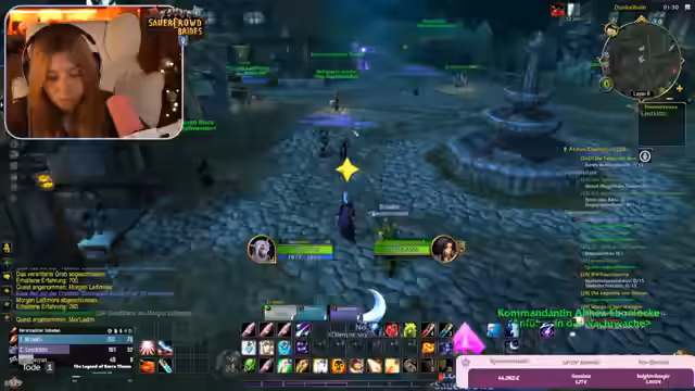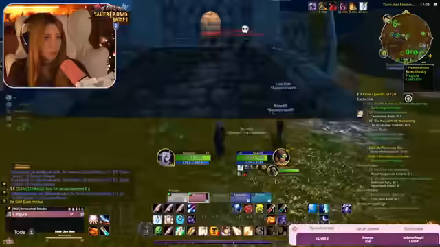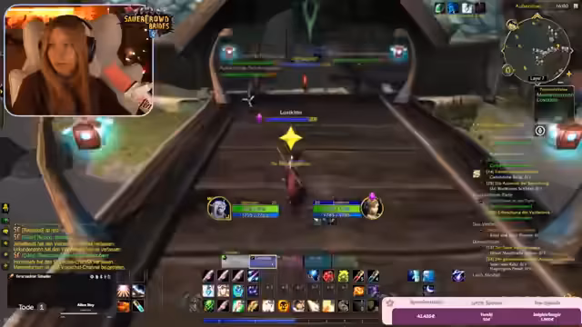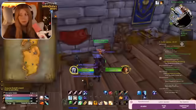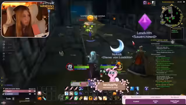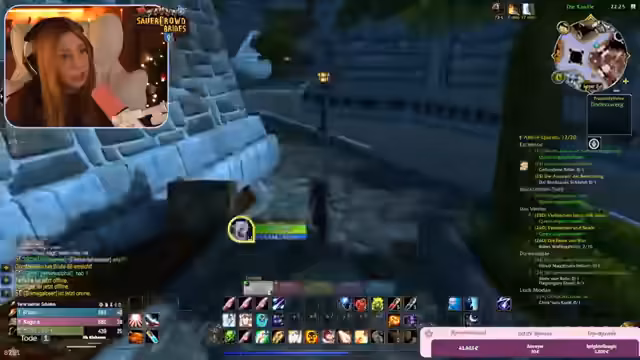 09:22:30Im weiteren Verlauf der Burg-Quests kam es zu chaotischen Kämpfen, die durch Bug-Verhalten und das Addon 'Subcrate' zusätzlich erschwert wurden. Das Addon schaltete Spieler aus der Gruppe, wenn sie den Server-Layer wechselten, was zu gefährlichen Situationen führte, da ausgeschaltete Spieler nicht helfen konnten. Der Streamer bat darum, Einladungen nur von vertrauenswürdigen Personen anzunehmen, um Sabotage zu vermeiden.