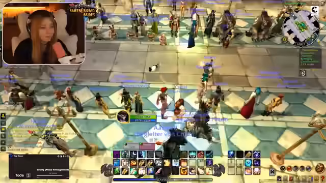 02:13:52Die Gruppe bereitet sich auf einen Dungeon-Einsatz vor und diskutiert über die bevorstehende Hochzeit sowie deren Outfits. Es kommt zu technischen Herausforderungen, da jemand aus der Gruppe ausgeloggt werden muss, um Gegenstände auf der Bank zu handeln. Dies verlangsamt den Fortschritt. Einige Spieler sterben im Dungeon, was zu Diskussionen über Loot-Rollen und Koordination führt.