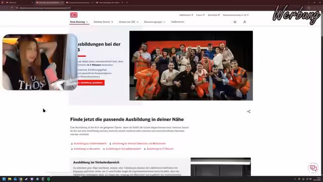 00:55:56Im Rahmen einer Kooperation mit der Deutschen Bahn stellt die Streamerin deren Ausbildungsangebote vor. Sie berichtet, dass sie selbst anfangs im Erzieherbereich tätig war und dies ihrem ursprünglichen Wunsch, Lehrerin zu werden, nahekommt. Sie kritisiert die gesellschaftliche Tendenz, Gaming als wenig ernst zu nehmen und erklärt, dass viele Fähigkeiten wie Führung, Organisation und Konfliktmanagement in Games erlernt werden. Um dies zu demonstrieren, stellt sie den Karriere-Skillcheck der Deutschen Bahn vor, der die Gaming-Skills der Nutzer mit passenden Ausbildungsberufen, wie Gleisbauer oder IT-Systemelektroniker, abgleicht.