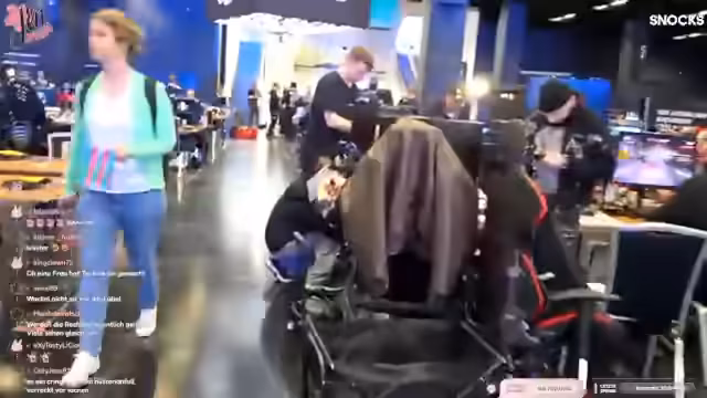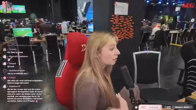 00:14:39Nach der Ankunft an der Gamescom-LAN muss der Einlass erst abgewartet werden. Das Tor ist zunächst geschlossen und lässt niemanden rein, was zu einer unangenehmen Situation führt. Nach der Öffnung des Tores gelangt die Streamerin an ihren Platz. Dort muss sie jedoch erst den Bereich von Werbeartikeln freimachen und beginnt mit der komplexen Einrichtung der Streaming-Technik, inklusive Monitore, Kameras und Mikrofonen. Der Start des Streams ist von technischen Herausforderungen und dem chaotischen Aufbau des Arbeitsplatzes geprägt.
