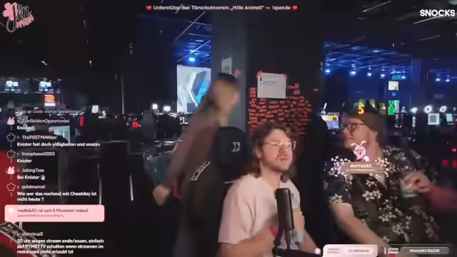 10:53:30In einem Gespräch mit einem anderen Streamer werden diverse alltägliche und persönliche Themen angesprochen. Dazu gehören die Suche nach T-Shirts, eine Quest auf der Messe nach Tampons und die Besonderheit, dass andere Streamer, wie Maurice Weber, sehr laut sind. Ein sarkastischer 'Lästern'-Segment über andere Streamer wird geplant, woraufhin Maurice Weber und sein Auftritt bei einem Konzert thematisiert werden.