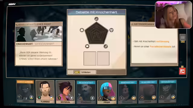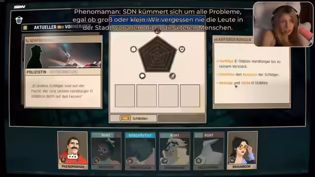 02:36:46Der Stream beginnt mit der Vorstellung eines fühlenden Konstrukts aus Erde, das für seinen unorthodoxen Ansatz bekannt ist. Nach einer kurzen Diskussion über Vorbereitungsschritte führt der Dispatcher Robert Robertson das neu formierte Team ein, dem aus verschiedenen Akteuren besteht, darunter eine Influencerin mit dramatischem Verhalten. Die erste Mission führt das Team nach Wendko, wo es einen hochkarätigen Eröffnungsfall zu bearbeiten hat, bei dem ein Held entsandt werden muss, um eine wichtige Veranstaltung zu sichern.
