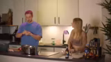 00:23:35Bei der Vorbereitung der Zutaten für das Dessert wird ein ungeplanter Störfaktor eingeführt: Darth Vader Helm. Nach einem komischen Geräusch im Hintergrund wird der Helm entdeckt und einiges an Zeit für sein Aufgewenden und Demonstration verwendet. Dies mündet in eine spontane und ausführliche Star Wars Roleplay-Szene, in der eine Parodie auf die bekannten Vater-Sohn-Beziehungen zwischen Luke und Darth Vader gespielt wird. Das Kochen wird dadurch zunächst unterbrochen.