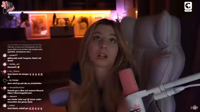07:09:29Das Gespräch nimmt eine sehr persönliche und emotionale Wendung. Es geht um intensive Gefühle und tiefe Verbindungen, die die Streamerin zu ihrem Partner Jakey Wakey empfindet. Sie gesteht, dass sie sich trotz großer und guter Gesellschaft an ihm vermisst hat und dieses Gefühl als etwas Bedeutendes wertet. Dies führt zu einem herzlichen, aber auch emotional aufgeladenen Moment, in dem Harmonie und Jakey sich ihre gegenseitigen Gefühle offenbaren. Harmonie gibt zu, dass sie ihr Leben gefährdet hätte, um bei ihm zu sein.