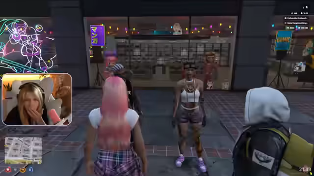 02:31:47Nach der Einweisung gehen die Streamer und seine Begleiter einkaufen, um sich für die Arbeit im Café und für mögliche Rollenspiele auszurüsten. Sie kaufen diverse Requisiten und Outfits, darunter Tablets, Spielzeug und spezielle Arbeitskleidung, die in pink gehalten sein soll. Ziel ist es, einheitlich aufzutreten und eine coole Atmosphäre im Café zu schaffen. Beim Bummeln stoßen sie auch auf eine Bekannte und unterhalten sich über die Zukunft.