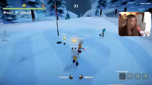 00:48:51Das Spiel Battle Golf wurde gespielt, wobei neue Karten und Mechaniken wie Windanzeige und Power-ups eingeführt wurden. Streamerin haderte mit der Steuerung und mapabhängigen Herausforderungen. Während des Spielbetriebs traten technische Probleme wie Steam-Verbindungsprobleme, Weather-Effekte und rauchige Grafiken auf, was zu frustrierenden Momenten führte.