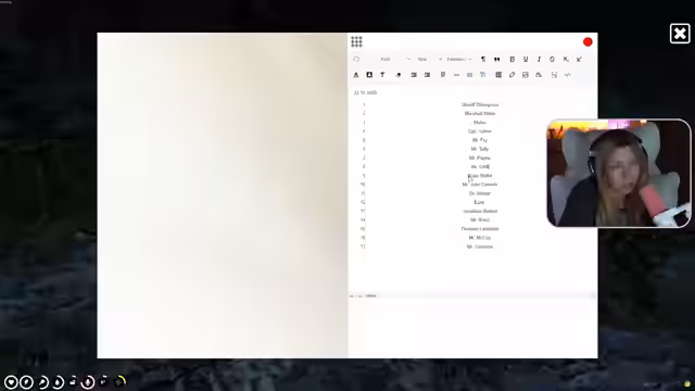 01:50:36Die Streamerin reflektiert über die Schwierigkeit, eine gesunde Beziehung zu führen, insbesondere mit Charakteren wie Harmony, Ezra oder La Rosa. Sie trifft Harmony Briggs und entschuldigt sich für ihre Vergesslichkeit. Die Streamerin und Harmony verabschieden sich, wobei die Streamerin bemerkt, dass sie in dieselbe Richtung laufen, was sie als unangenehm empfindet. Es wird über die Beziehung zwischen Carmen und Weber gesprochen, die beide als unfähig zu einer gesunden Beziehung beschrieben werden. Die Streamerin plant eine Ladies' Night und überlegt, wen sie einladen soll, darunter Miss Fitzjames, Honeycut und die Bürgermeisterin von Valentine. Jonathan Belfort wird als sehr speziell, unberechenbar, drama-liebend, manipulativ und überheblich beschrieben, der nicht an die wahre Liebe glaubt. Lady Blair Elizabeth Fitz James Stewart wird als jemand beschrieben, dem Rang und Ansehen wichtig sind und der eine Affäre mit Mr. Sandwich hat. Die Streamerin ist frustriert über technische Probleme mit TeamSpeak und die Anwesenheit von Kitty Rose, die sie nicht mitnehmen möchte. Sie beschließt, Blackwater zu besuchen und sich dann auf den Weg zu machen. Die Streamerin freut sich über kleine Dinge im Leben, wie einen Schokopudding, und achtet darauf, nicht zu viel herumzudingseln, wenn sie in einem tiefen Gespräch ist. Sie betont, dass der Hass auf einen Charakter im Rollenspiel bleiben sollte und nicht auf die reale Person übertragen werden darf. Die Bürgermeisterin von Valentine trifft ein und es kommt zu einem Missverständnis über eine Blume, die angeblich von der Streamerin auf Dr. Webers Schreibtisch gelegt wurde. Die Bürgermeisterin versucht, die Streamerin zu überzeugen, dass Dr. Weber kein guter Mann ist und dass sie Otis liebt. Sie verabreden sich für ein Treffen in Saint-Denis, damit die Streamerin Otis kennenlernen kann. Die Streamerin vermutet, dass die Bürgermeisterin die Blume auf Dr. Webers Schreibtisch gelegt hat, um die Ladies' Night zu sabotieren. Sie ist frustriert über die technischen Probleme, die sie daran hindern, ihre Voice Range zu fixen. Sie trifft Mr. Daniels und sucht weiterhin nach ihren Freunden.