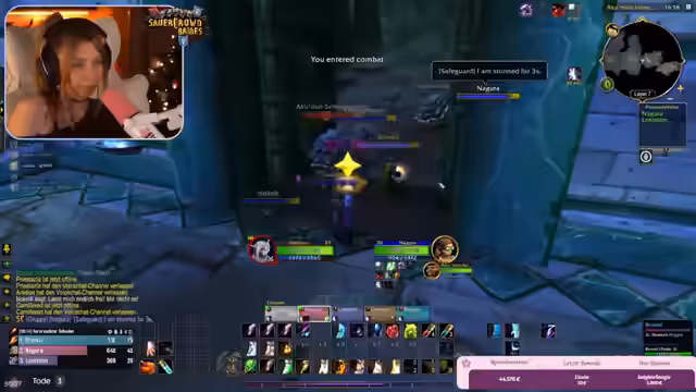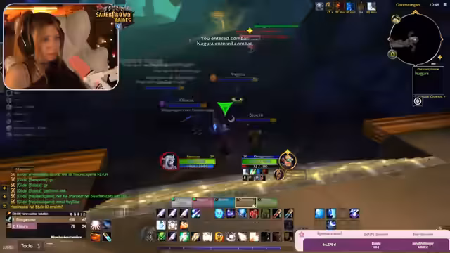 04:40:40Die Gruppe beginnt mit dem Dungeon 'Blackfathom Deep'. Die Streamerin, als Priesterin, übernimmt die Heilerrolle und zeigt sich beeindruckt von der Effizienz der Gruppe. Sie agiert äußerst vorsichtig, besonders bei der Unterwasseratmung, und ist besorgt vor den Mobs im Dungeon. Das Gameplay wird von strategischen Anweisungen, dem Aufteilen von Aggro und dem Sammeln von Loot geprägt. Die Dynamik in der Gruppe ist positiv und kollegial.