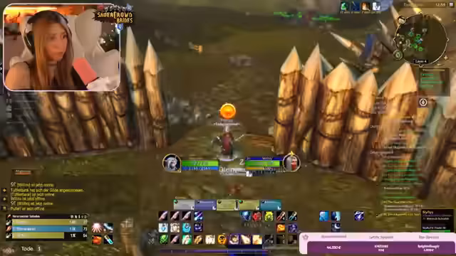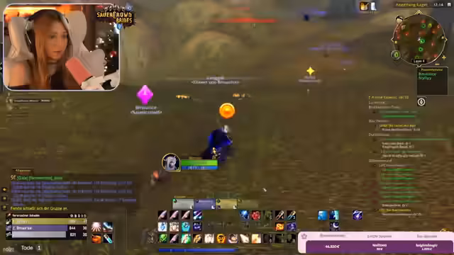 00:42:58Das Gameplay konzentriert sich auf das Lösen von Quests im Gebiet Sumpfland. Die Streamerin sammelt gemeinsam mit ihrer Gruppe Kräuter und kämpft gegen Orks, um die Quest 'Kriegsflaggen' abzuschließen. Dabei wird auf die Gefahren des Gebiets hingewiesen, insbesondere die Netze der Orks, die das Entermen erschweren. Die Zusammenarbeit in der Gruppe ist entscheidend, um die gefährlichen Elite-Mobs und Questziele, wie das Katapult und den späteren Bossgegner, sicher zu meistern. Ein Gruppenmit stirbt, was aber als normaler Teil des Prozesses im Hardcore-Modus angesehen wird.