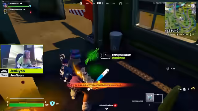 04:29:19Der Stream beginnt mit einer intensiven Runde Fortnite. Nach einem kuramen Austausch über die Spielstrategie und erlaubte Waffen geht es los. Die Spieler finden sich auf einer Brücke wieder und stellen fest, dass es in der Runde nur Nahkampfwaffen wie Sturmgewehre und Maschinenpistolen geben wird. Sie beschließen, sich zu verstecken und strategisch zu agieren, um die ersten Minuten zu überleben, während die Spielzone schrumpft und Bewegung lebenswichtig wird.