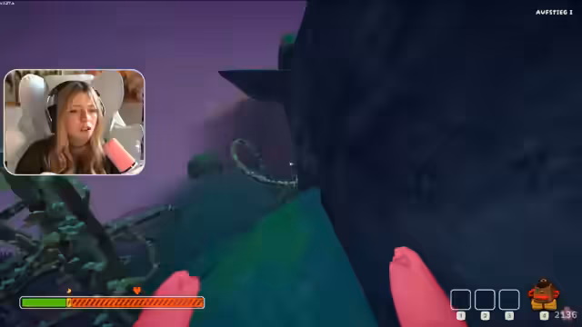 06:45:10Die Streamerin erlebt ein aufregendes Kletterdrama auf einem virtuellen Berg. Nachdem sie gescheitert ist, gelingt es ihr doch, die anderen Spieler hochzuziehen. Julie ist jedoch noch oben und es wird riskant. Die Streamerin beschreibt die Strapazen und das Gefühl, am Limit zu sein, sehr eindrücklich. Sie opfert sich und gelangt selbst nach oben, während Julie zurückbleibt. Das gemeinschaftliche Ziel, alle oben zu bringen, wird mit Emotionen ausgetragen.