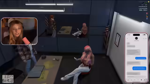 11:56:52Das Verhör eskaliert zu einem chaotischen Dialog, in dem die Streamerin sich selbst widerspricht und die Lügen der anderen durchscheinen lassen. Sie lügt zunächst weiter, gibt dann aber unvollständig zu. Die Situation verwirrt alle Beteiligten, da die geschilderten Gründe für die Aktion sich widersprechen. Die Beamten bleiben bei ihrer harten Haltung und lassen die Festgenommenen in Zellen bringen, während die Streamerin weiterhin versucht, die Situation zu verstehen und ihre Geschichte zu rechtfertigen.