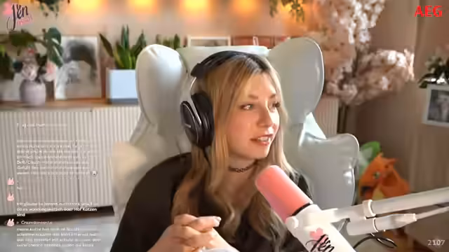 01:44:37Die Streamerin plant, in Hamburg einen Hund zu adoptieren und dabei unterstützt, da sie dort ein soziales Umfeld hat, das bei Abwesenheit aufpassen kann. Der Hund soll als Studio-Hund sozialisiert werden. Gleichzeitig wird die Kooperation mit Bonjwa erwähnt, bei der sie an deren gemeinsamen Studio-Projekt beteiligt ist und sich sehr über die Zusammenarbeit freut.