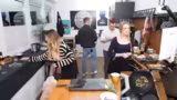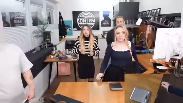 01:54:04Eine spontane Koch-Challenge wurde gestartet, bei der die Streamerin mit Sonja kochte. Dabei wurden verschiedene kulinarische Herausforderungen und Techniken besprochen, wie das Handhaben von Gemüse und das Anrichten von Speisen. Gleichzeitig traf Sonja im Studio ein, was für eine freudige und überraschte Reaktion sorgte. Die Ankunft der Gastgeberin schuf einWG-ähnliches und entspanntes Flair, das durch herzliche Begrüßungen und gegenseitige Komplimente verstärkt wurde.