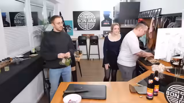 02:14:00Nach einigen Abstimmungen und Minispielen wurde das Team für die Koch-Challenge festgelegt. Jen und Asta mussten eine Reishackpfanne zubereiten, während Leon und Kaddi für Udon-Nudeln mit Tofu kochten. Nach dem Kochen fand eine Blindverkostung statt, bei der Marcel als neutraler Tester fungierte. Er war überrascht von der Qualität und dem Geschmack be Gerichte, insbesondere der Tofu-Pfanne wurde als unerwartet lecker bezeichnet. Die Nudeln setzten sich letztlich als Sieger durch.