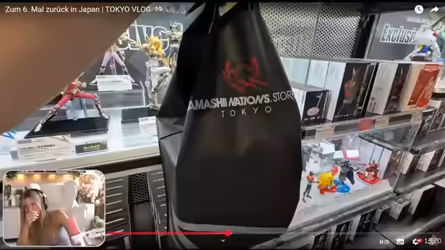 01:13:55Ein weiterer Abschnitt der Vlogs zeigt den Besuch in Akihabara, dem bekannten Elektronik- und Manga-Viertel von Tokio. Die Streamerin und ihre Gruppe erleben in den Convenience Stores den spaßigen, aber auch etwas frustrierenden Prozess, die Automaten-Spielzeuge, sogenannte 'Gachapon', zu ergattern. Ein Höhepunkt ist ein 'Finger-Dino'-Plüschtier, das die Gruppe gemeinsam kauft und sich jeden Tag weitergibt. Gleichzeitig stellt die Streamerin die Nachricht in die Gruppe, dass sie wahrscheinlich eine Sailor Moon-Figur in der Unterkunft vergessen hat, was sie sehr ärgert.