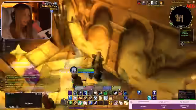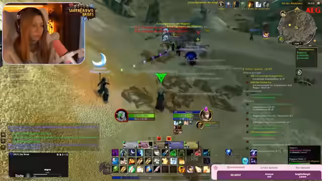 06:54:36Der Stream beschäftigt sich mit gefährlichen Gruppeneinsätzen in verschiedenen Gebieten, die immer wieder zu Toden führen. Es wird über eine AOE-Farm im Schlinghorn-Tal mit Grubby berichtet, bei der der Streamer in Lebensgefahr schwebte. Auch im Rotkammgebirge kam es bei einer Farm-Aktion mit Grubby und Yuli zu einem chaotischen Kampf, in dem die Gruppe knapp dem Tod entrann. Der Streamer beschreibt Grubby dabei als potenziellen Massengefährder, der das Ziel verfolge, der einzige Level-60-Spieler zu werden.