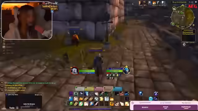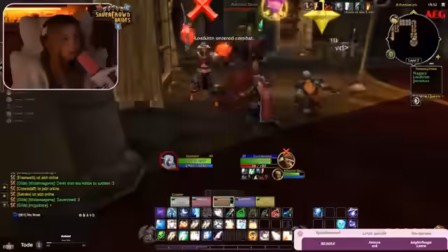 06:02:40Trotz der Meinungsverschiedenheiten beschließt die Gruppe, in die Burg zu gehen, um mehrere Quests zu erledigen. Es wird darauf hingewiesen, dass die Quests sharebar sind. Das Gebiet innerhalb der Burg wird als tückisch beschrieben, mit vielen stealthenden Mobs und der Notwendigkeit, mehrere Male zwischen der Stadt und der Burg zu pendeln, da Folgequests anfallen. Die Streamerin und die Gruppe müssen aufpassen, nicht von anderen Spielern angegriffen zu werden, während sie ihre Ziele jagen. Der Spawn von Gegnern und die Notwendigkeit, respawnende Abzeichen zu farmen, werden als Herausforderung erwähnt.