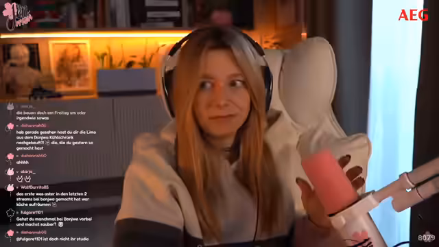 00:18:02Die Streamerin berichtet über ihren freien Vortag, den sie sehr genossen hat, was den Eindruck erweckt, dass es ein anstrengender Tag war. Sie erwähnt ein privates Projekt, die drastische Steigerung ihrer Stream-Aktivität und die negativen Auswirkungen auf ihre Freizeit. Sie schildert im Detail den anstrengenden, aber befriedigenden Prozess der gründlichen Reinigung ihrer Wohnung, einschließlich Wohnzimmer, Küche und zweiter Badezimmer. Abends ging sie mit einem Freund Marcel ins Kino, um Avatar 3 in 3D zu sehen, und betont, dass sie den Film trotz seiner Länge sehr genossen hat und ihn im Kino empfiehlt.