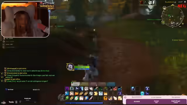 05:40:51Nach dem erfolgreichen Bosskampf fällt der Streamerin ein, dass sie seit Level 44 noch nicht beim Klassenlehrer war, um eine neue Fähigkeit zu lernen. Ein technisches Problem mit OBS wird erwähnt, aber schnell gelöst. Die Gruppe überlegt, was sie als Nächstes tun sollen. Optionen wie das Abschließen von Elite-Quests in South Shore oder der Besuch von Dungeons wie Kloster und Hügel werden erwogen, wobei diese ein Level pro Tag bringen könnten. Die Streamerin hat ihre eigenen Levelziele und hilft anderen Gildenmitgliedern, was ihre Spielzeit beeinflusst.
