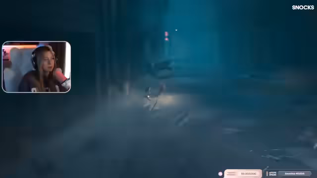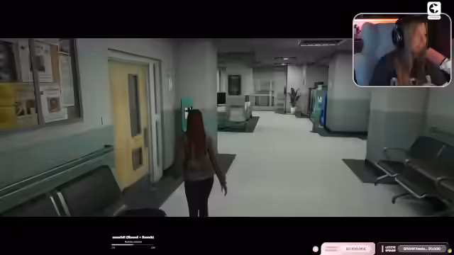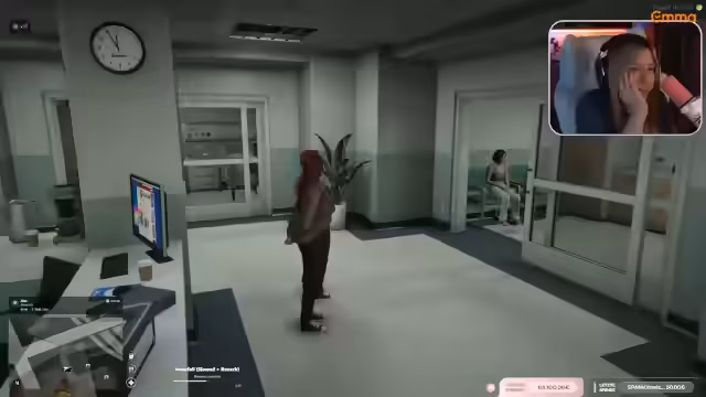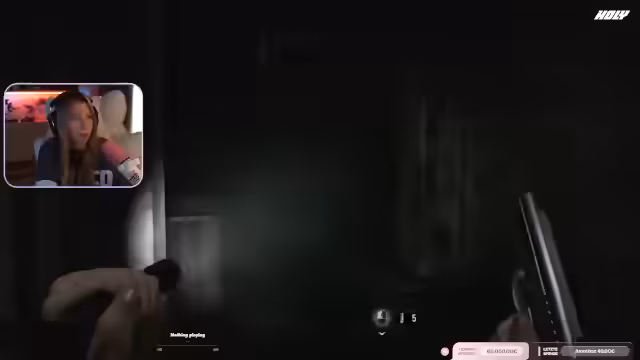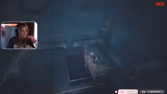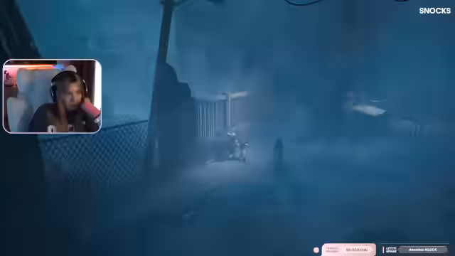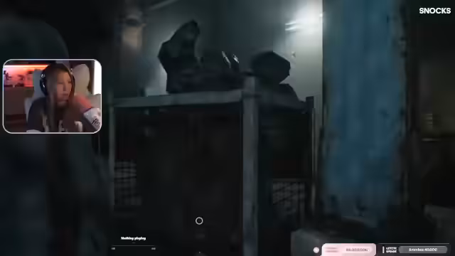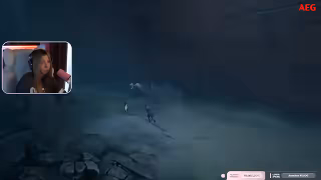 01:00:01Der Stream wechselt zum Gameplay von Resident Evil. Die Streamerin, die den Charakter Grace spielt, ist im Sanatorium-Keller unterwegs. Sie kämpft sich durch dunkle Flure und Schächte, wobei sie Jump-Scares vermeiden und sich oft in lichtgesicherten Zonen zurückzieht. Ihr Ziel ist es, Munition herzustellen und sich auf die Begegnung mit einem Wesen vorzubereiten, während sie gleichzeitig den Chat um Hilfe bei der Orientierung bittet.