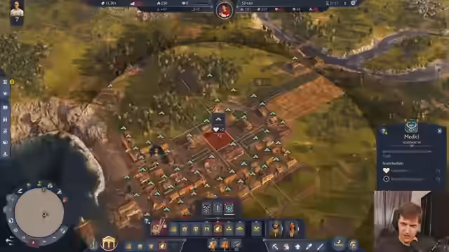 00:26:00Während der Wartezeit auf die Diablo 4-Infos, unternimmt der Streamer eine spontane Ablenkung. Er startet eine Demo des Spiels Anno 1800, um dieses kurz vorzustellen und selbst die Spielmechaniken zu testen. Der Streamer baut eine Inselstadt auf, konzentriert sich auf die Grundversorgung der Bevölkerung mit Lebensmitteln wie Fisch und Brot und stößt dabei auf Herausforderungen wie die Organisation von Produktionsketten, die Verkehrswege und die Bedürfnisse der Einwohner.