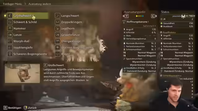 03:26:05Nach einem 17-minütigen Kampf wird das Belohnungsgeld von 8200 erwähnt, wobei 4000 für zwei Tode abgezogen werden, was als Arztkosten interpretiert wird. Es folgt die Überlegung, dass man einfach besser spielen müsse. Anschließend wird die Mission 'Jenseits der Sinnflut' abgeschlossen und die Frage aufgeworfen, ob man die Waffe verbessern kann. Die Affinität der Waffe beträgt 10% und das Element ist Wasser. Es wird spekuliert, ob die Waffe 570 Angriff hat und zusätzlich 160 im Wasser. Die Frage kommt auf, welche Waffe ausgerüstet ist und ob der Knochenknüppel 2 schlechter wäre. Es wird festgestellt, dass das Monster möglicherweise keine Schwäche gegen Wasser hatte. Es wird angemerkt, dass es keine Möglichkeit gibt, die Waffen zu testen, und die Seltenheit 4 wird als möglicherweise gut bewertet, da sie höhere Werte aufweist.