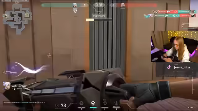 01:59:15Die Streamerin ist mitten im intensiven Gameplay und kommentiert eine knappe Runde. Sie ist sich sicher, durch einen Wallbang einen Gegner zu treffen, der durch einen Fehler des Gegners überlebt. Ihr Team gewinnt die Runde knapp, was sie als "geisteskrank" und "wunderbar" beschreibt. Trotzdem zeigt sie Frustration über unglückliche Entscheidungen und Pech in der laufenden Partie.
