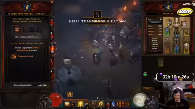 01:56:29Der Stream konzentriert sich auf die gezielte Verbesserung des Charakters. Es werden Halsketten und Ringe mit Stats wie Stärke und Vitalität gesucht, um den DPS zu erhöhen. Eine Leoryx-Krone und ein gelbes Einhandschwert werden als wichtige Items identifiziert. Die Suche nach einem Zweihänder wird ins Auge gefasst, da er mit dem 'Shieldstoß'-Skill kombiniert werden kann, um Gegner zu blenden und Schaden zu verursachen. Man entscheidet, Items mit hohem Schaden, wie eine 37er Waffe, mitzunehmen.