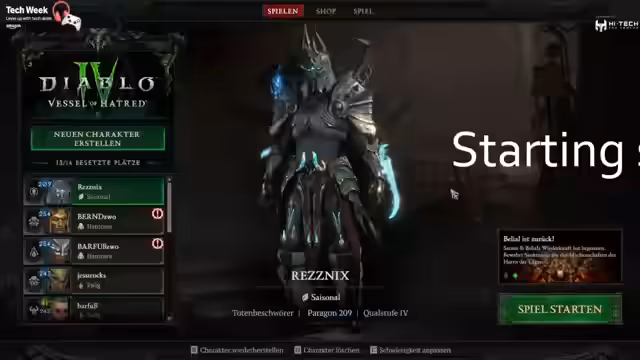 00:14:35Der Stream beginnt mit einem musikalischen Intro und den Begrüßungen der Streamerin an ihre Zuschauer. Nach einer kurzen Pause für einen Kaffee geht es um die Sound- und Videoprüfung sowie eine Begrüßung des Wetters in Bayern. Sie startet direkt in das Gameplay von Diablo 4 und macht sich auf den Weg zum Weltboss, während sie ankündigt, dass um 17 Uhr eine große Überraschung stattfinden wird, bei der ein Fernseher zu gewinnen ist.