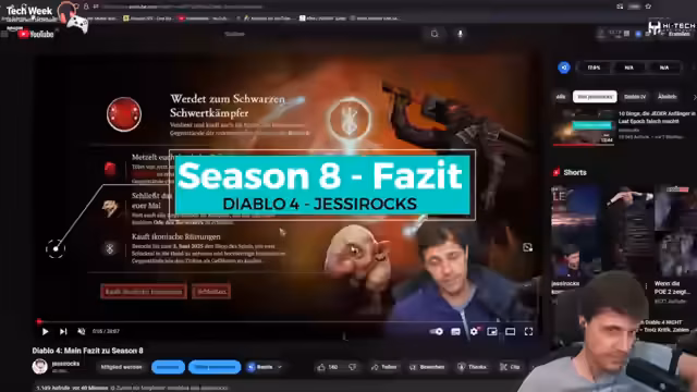 00:43:37Im weiteren Verlauf des Streams geht es um das Farmen von Ressourcen und Items. Die Streamerin teilt einen Geheimtipp, mit dem man durch das Schließen des Saison-Themas schnell an Gegenstände gelangen kann. Parallel dazu wird über den aktuellen Zustand von Diablo 4 gesprochen, wobei die Kritik am Battle Pass und der Hoffnung auf kreativere Saisoninhalte geäußert wird.