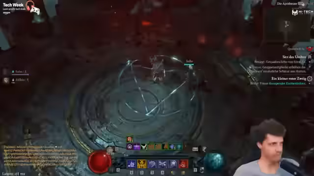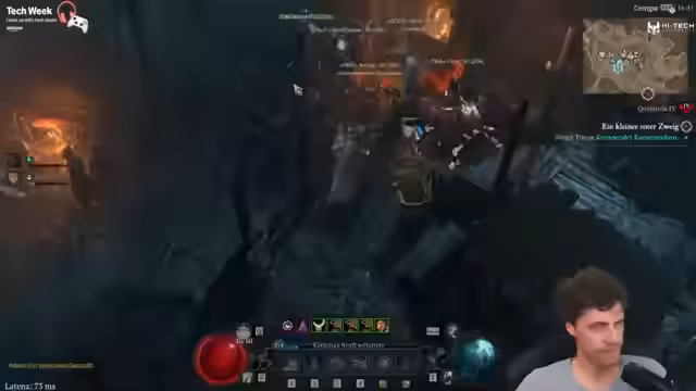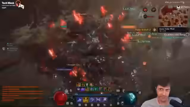 01:44:42Ein seltener Bug führt dazu, dass die Wellenanzeige der Infernal Horden korrekt funktioniert. Jedoch ist das Gameplay weiterhin von starkem Delay und Grafikfehlern geprägt, die vor allem durch die Fähigkeiten eines Schurken ausgelöst werden. Die Streamerin diskutiert über die Ursachen der Performanceprobleme und den Einfluss von Internet und Hardware.