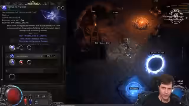03:10:32Nach dem erfolgreichen Bosskampf konzentriert sich der Streamer auf das Management seiner Ausrüstung und die Verbesserung seiner Stats. Sein Hauptziel ist es, seine Widerstände gegen Elementarschaden, insbesondere gegen Feuer, zu erhöhen. Er experimentiert mit dem Craftingsystem, indem er Ringe mit Alchemie-Orbs aufwertet und kauft Items beim Händler, um seine Resistenzen zu verbessern und seine Überlebenschancen zu erhöhen.