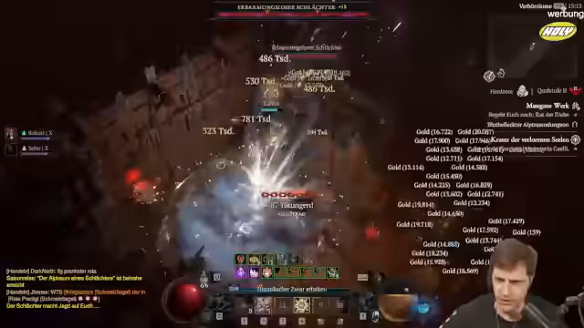 02:55:25Mit dem riesigen Ertrag von über 8.500 Eiern beginnt eine intensive Phase der Ausrüstungsaufwertung und des Gambelns. Der Fokus liegt auf dem Finden oder Herstellen von Gegenständen mit Greater Affix (GA). Das Schwert wird mit großen Erfolgen aufgewertet, was zu einem leichten Überrollen der Lebenspunkte führt. Das Gambeln an Händlern verläuft jedoch erfolglos, da wichtige Items wie die GA-Halskette nicht auftauchen.
