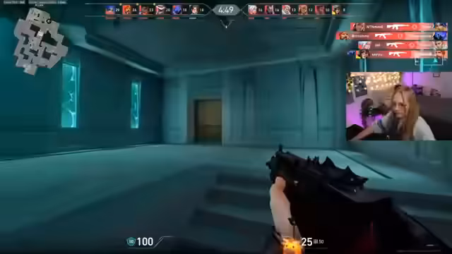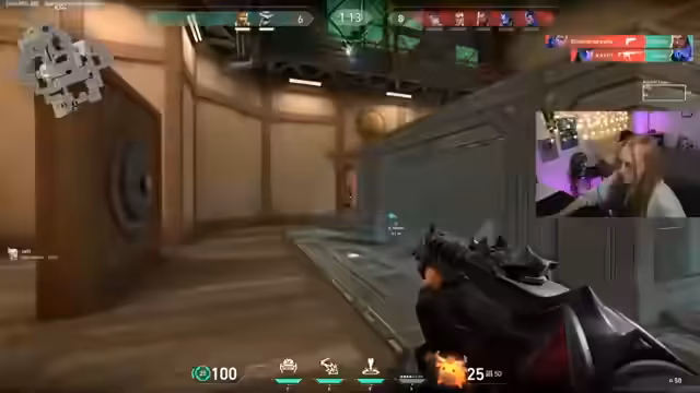 00:33:23Die Streamerin kündigt an, heute wählen gehen zu müssen, und gibt den Stream-Zeitpunkt bis circa 15 Uhr vor. Anschließend beginnt sie mit dem Gameplay in Valorant, wobei sie ein erstes Match startet und sich auf den Spielmodus konzentriert. Sie spricht in der Runde mit ihrem Team und gibt Anweisungen, während sie selbst den Agenten Omen spielt.