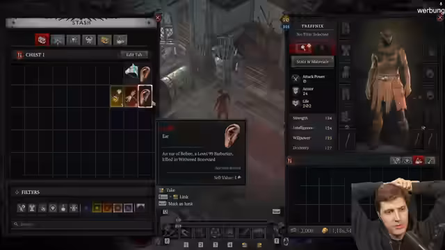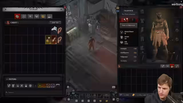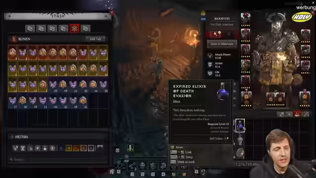02:24:18Der Streamer beschäftigt sich eingehend mit seinem Diablo-Inventar, insbesondere mit alten Elixieren und Mats, die er nicht mehr zuordnen kann, da das Spiel so oft umgebaut wurde. Er äußert den Wunsch, dass die Mechanik, Bosse für doppelten Loot schwerer machen zu können, wieder eingeführt wird, da dies dem Spiel "Flair" verliehen habe. Des Weiteren wird die Inventarverwaltung in Path of Exile (PoE) als vorbildlich gelobt, insbesondere die Sortiermöglichkeiten und der Lootfilter, die als "unglaublich gut" beschrieben werden. Es wird angemerkt, dass ohne einen effektiven Lootfilter PoE "nicht die Hälfte der Spieler" hätte. Die Diskussion dreht sich auch um die Möglichkeit, Charaktere zu "reinkarnieren", um die gleiche Klasse mit einem bereits guten Namen weiterzuspielen, was als eine "neue Art von Faulheit" hinterfragt wird. Der Streamer betont die Bedeutung von Titeln wie "Gladiator" in Spielen wie WoW, die den Spielern Respekt verschaffen und ähnliche Elemente für Diablo 4 fordert, um die Historie und Leistungen der Spieler sichtbar zu machen.