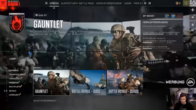 03:51:53Nach dem Giveaway startete der Streamer eine Runde im neuen 'Gauntlet'-Modus von Battlefield. In diesem schnellen Teamkampfmodus müssen Spieler Terminals erobern und halten. Die erste Runde war geprägt von Unklarheit über die Regeln und die Anzeige der feindlichen Teams. Die Platzierung am Ende war siebter, mit einer guten Performance von acht Kills. Der Modus wurde als schnell und actiongeladen bewertet.