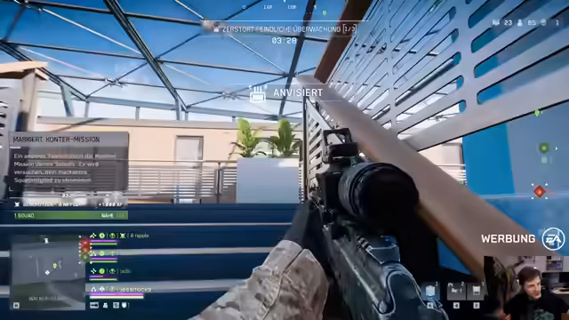 03:28:43Der Streamer zeigte die Position der Baronenhülle auf der Map, die als wichtiges Ziel dient. Es wurde erklärt, dass diese Aufgabe das sofortige Durchziehen erfordert und eine Feuerfalle auslöst. Im weiteren Verlauf des Streams wurde ein Giveaway für einen GeForce Now Ultimate Key durchgeführt. Der Fokus verlagerte sich anschließend komplett auf das Spiel Battlefield, insbesondere den neuen kostenlosen Modus 'Gauntlet', der als kurz und intensiv beschrieben wurde.