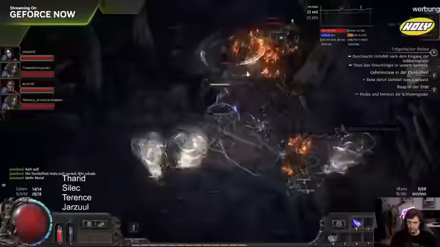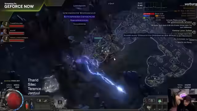 09:32:54Der Stream zeigt intensives Gameplay von Path of Exile 2 in einer Party-Konstellation. Die Spieler erkunden Gebiete, kämpfen gegen Mobs und planen den nächsten Bosskampf, zunächst den Frey. Die Kommunikation ist geprägt von strategischen Diskussionen über Builds und den ständigen Todesfaktor 'Sprinten', der Charakteren zum Opfer fällt. Die Gruppe interagiert, übernimmt Rollen und diskutiert die Herausforderungen des aktuellen Spieles.