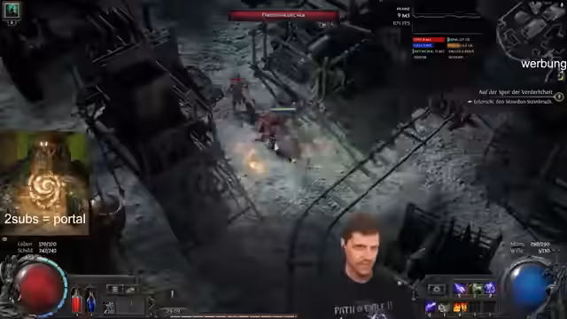 00:13:14Die Streamerin entwickelt ihre Build-Strategie weiter, indem sie passivte Fertigkeiten wie Mana-Regeneration und Schadenserhöhungen kauft. Ein zentrales Element im Gameplay ist die "Seuche", die Gegner infiziert und ihre Ausdauer erhöht. Der erste Bosskampf gegen einen Bengel wird als hart beschrieben, die Streamerin hat leere Heiltränke und muss den Kampf "auf den Millimeter gespielt" durchstehen. Sie erkennt an, dass sie den neuen Sprint-Mechanismus noch nicht gewohnt ist.
