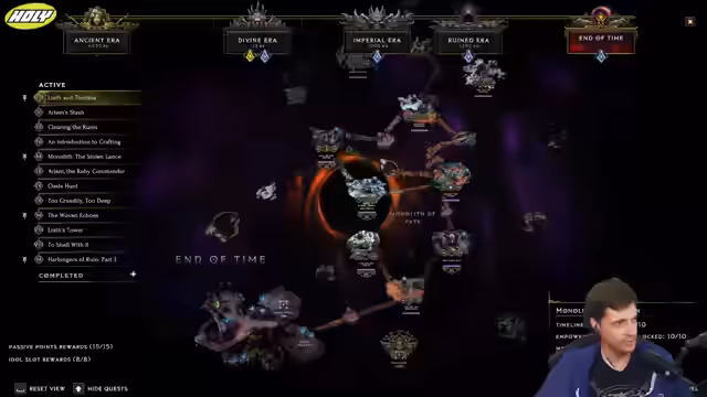 00:31:34Die Session widmet sich dem Gameplay von Last Epoch. Der Streamer spielt einen Autobomber-Paladin und diskutiert die Entscheidung, den Build weiterhin auf Smite statt auf den neu verfügbaren Hammer-Damage zu fokussieren. Er stellt fest, dass die aktuelle Ausrüstung den Wechsel nicht rechtfertigt und er mit dem Damage zufrieden ist. Es wird die Herausforderung angesprochen, Relikte mit spezifischen Affixen wie Plus 3 Smite zu finden, und das Problem des österreichischen Zolls wird erneut erwähnt, der die Lieferung von Merchandise verzögert.
