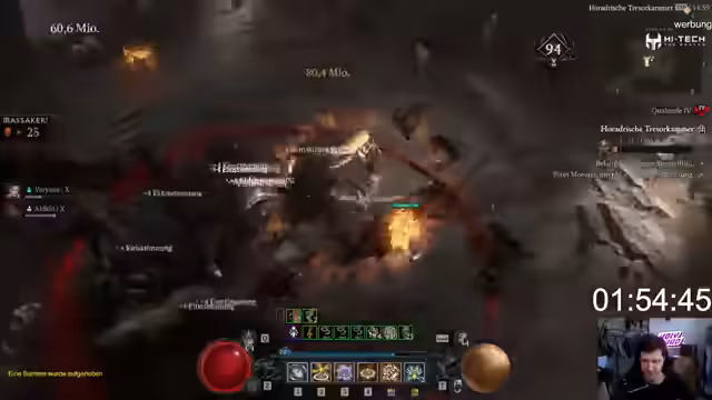 01:20:23Nach dem Stream reist Chasul zurück in die Schweiz, während der Streamer sich weiterhin auf Diablo 4 konzentriert. Nach Weihnachten steht das WoW Hardcore Event an, auf das sich gefreut wird. Der Streamer plant, einen menschlichen Paladin zu spielen, inspiriert vom Diablo-Paladin-Fieber. Die DPS-Rolle in Hybriden wird als vorteilhaft angesehen. Es wird humorvoll die Idee eines 'Killer Features' im HC Event erwähnt: in einer Bubble zuschauen, wie andere sterben, und dabei Dance-Emotes spammen, um auf der Hitliste ganz oben zu stehen.